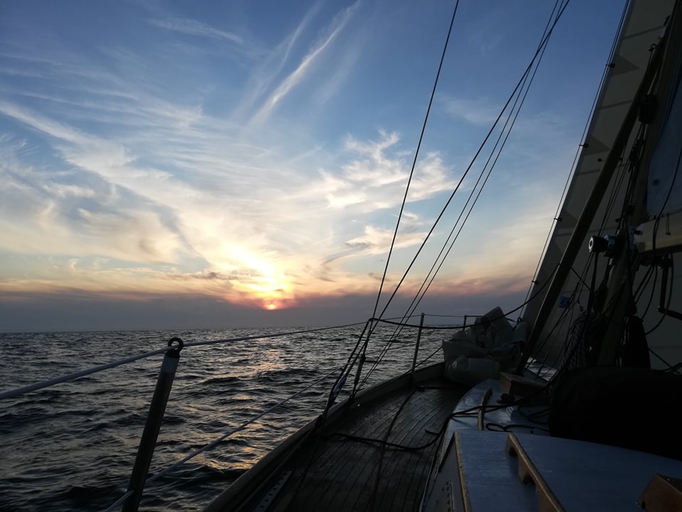 C’est un bateau qui devient facile, dès qu’il est bien réglé même avec 4m de creux et 35 nd, mais afin de garder son authenticité et ayant choisi de garder la configuration de gréement d’origine, cela complique les changements de voiles et les prises de ris, n’ayant aucun retour cockpit.
