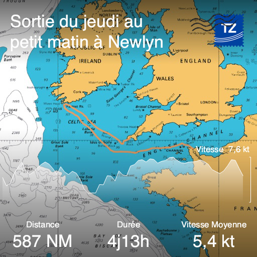 Parti en équipage réduit pour plus de 700 milles, nous avons longé es côtes anglaises du sud, une petite escale à Penzance (face au St Michael mount), contourné les Isles Scilly et traversé la mer d’Irlande, viré le Fastnet rock de nuit, dans la pétole et avec le courant,