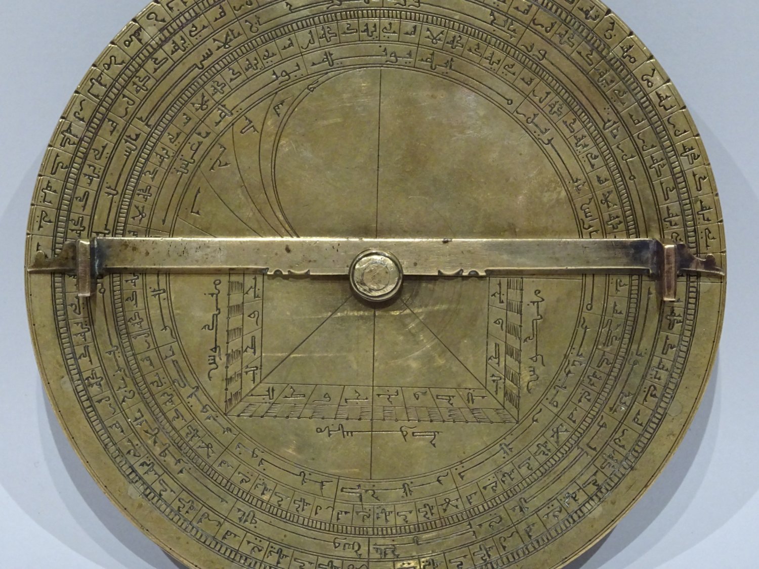 Notons ici que tous les astrolabes hispano-mauresques sont gravés en caractères koufiques, écriture arabe ancienne qui s’oppose à l’écriture cursive, tracée à la plume de roseau.