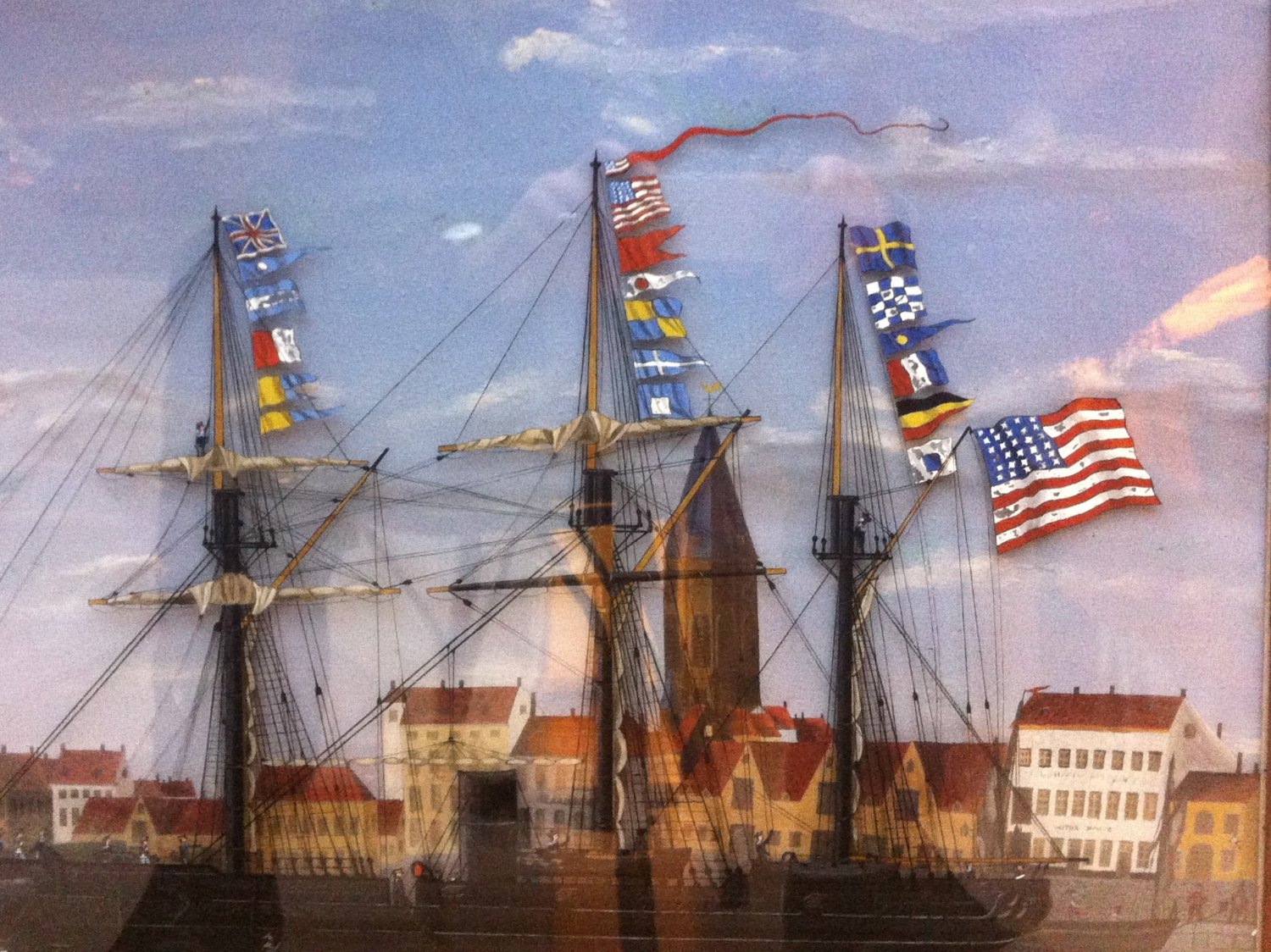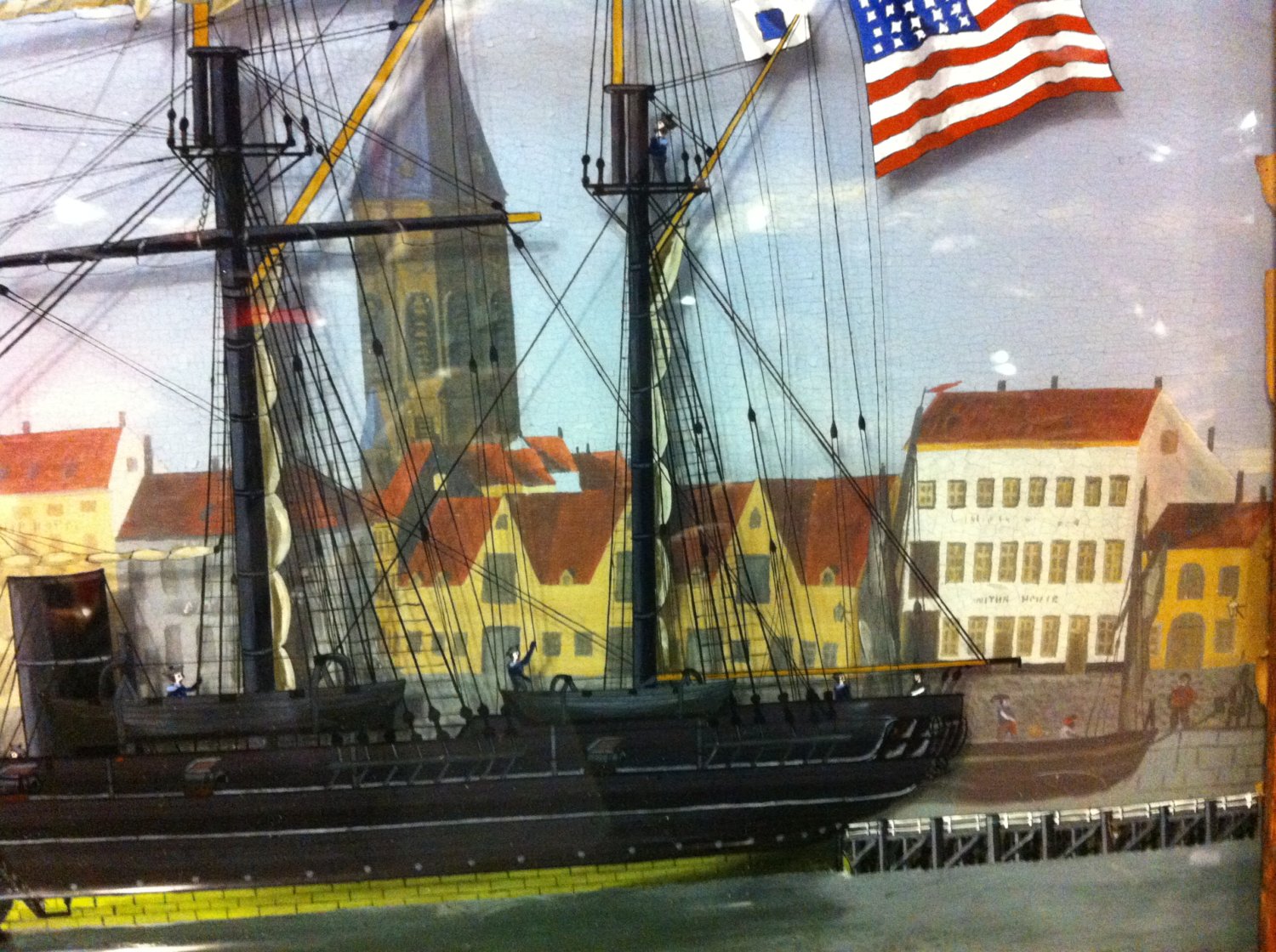 C’est ainsi que les étoiles blanches du pavillon américain (ou les fenêtres des immeubles) seront peintes en tout premier lieu. Une fois la peinture sèche, le peintre passera alors la deuxième couche, celle du fond bleu du pavillon, et ainsi de suite. Au final, il en résulte une belle luminosité qui fait l’un des attraits de ce type de peinture.