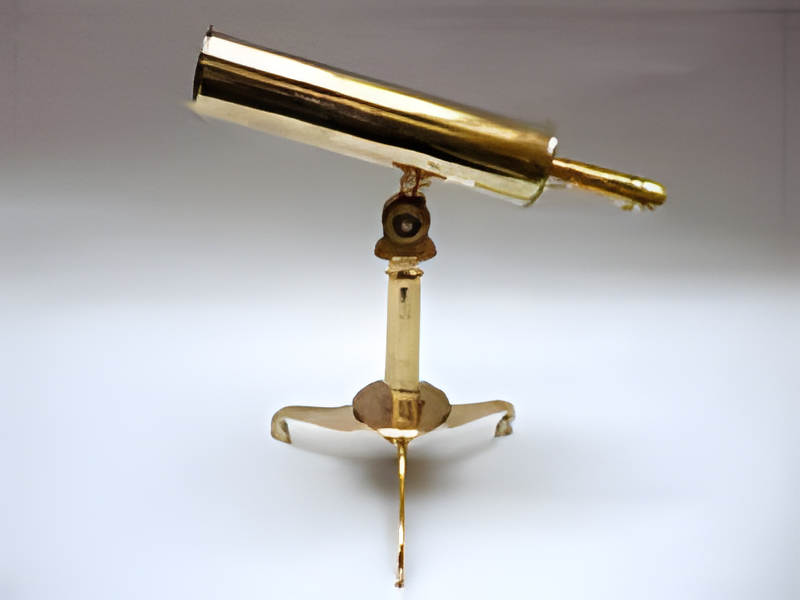 Le télescope grégorien : Télescope grégorien de petite dimension sur pied tripode en laiton signé « Peter & John Dollond Opticians to His Majesty London ». Longueur du fût : 21 cm. Circa 1760. Ce type de télescope était utilisé pour l’observation à distance. L’optique consistait en un relui de deux miroirs d’acier avec une vis sans fin sur le côté du tube pour ajuster la focale. L’image revenait sur le petit miroir pour finalement aboutir à l’oculaire sur lequel pouvait être vissé un filtre très sombre pour l’observation du soleil. Ce système disparut à la fin du XVIIIème siècle ».
