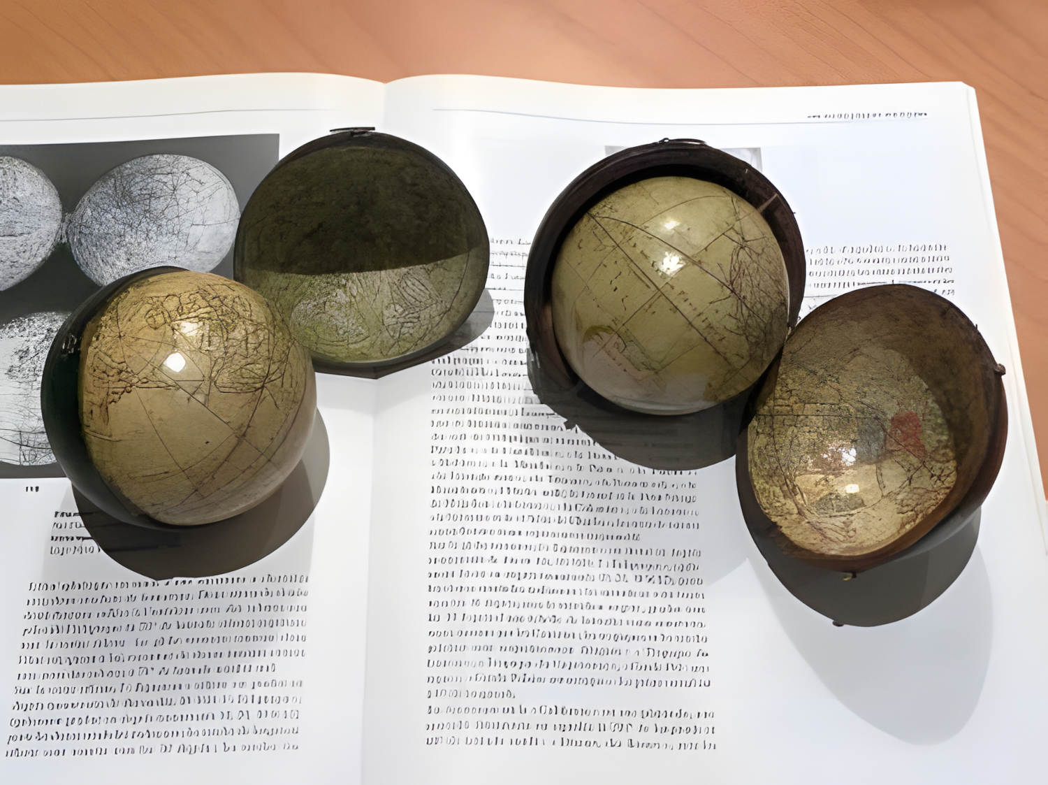 Constamment remis à jour à la suite des dernières découvertes, ces mini-globes, initialement recouverts de peau de roussette puis de carton gaufré resteront à la mode jusqu’au milieu du dix-neuvième siècle