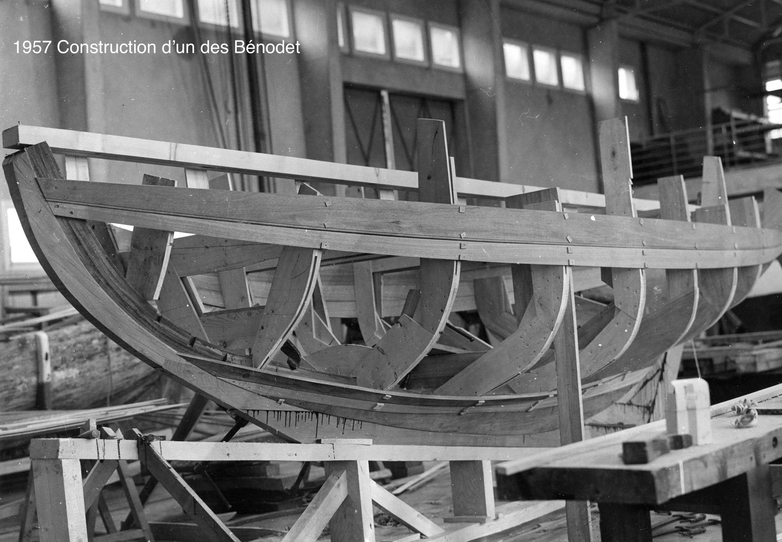 Les Bénodet (5,50 m) sont des bateaux en construction classique : bordés jointifs en acajou sur membrures ployées en acacia, le tout riveté cuivre. Leur forme en V profond, avec un maître-bau très plein et un creux important, est très élégante. Gréés en sloop, ils se caractérisent par un mât d’une hauteur qui peut apparaitre immense, mais qui est nécessitée par leur déplacement très fort.